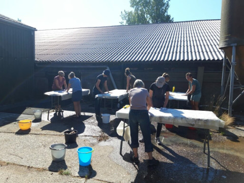 Een prachtige locatie om te gaan vachtvilten: tussen de natuur en het geluid van de vele vogels! Ervaar zelf hoe het is om van een geschoren schapenvacht een kleed te maken!